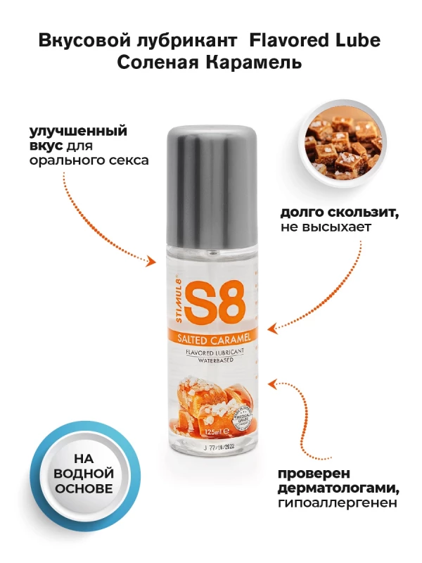 Восхитительный гель с ароматом и вкусом соленой карамели на водной основе "Stimul 8 Salted Caramel" - идеальная немецкая классика для самых чувственных моментов!